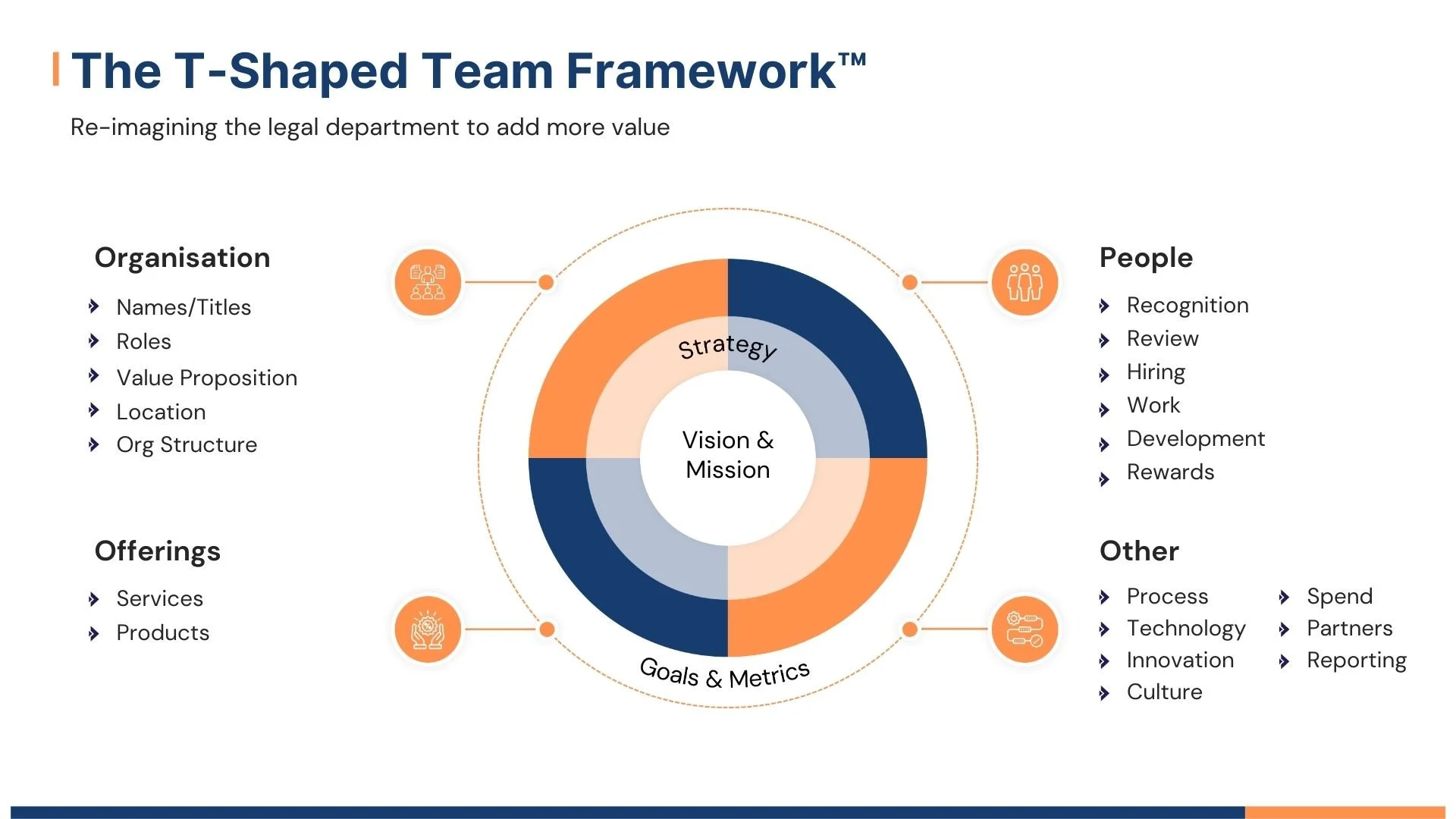 One of the many attractions of the Vision and the Framework is that it can be adapted and applied at an individual level to compliance, legal operations and other professionals and it can, and should, also be applied at a department or firm level as outlined in my T-Shaped Team and T-Shaped Firm Frameworks™.